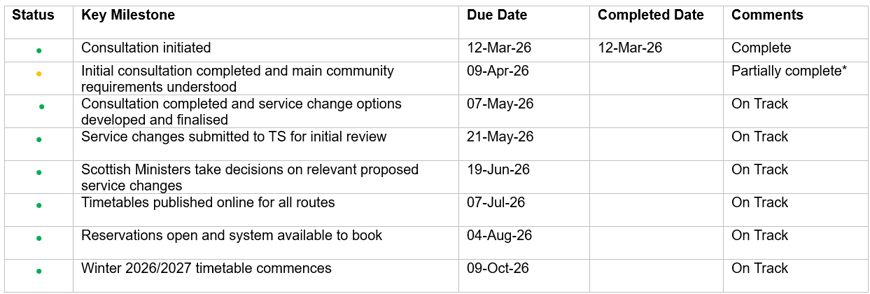 *Initial consultation is now complete for all routes, except Largs–Cumbrae, which remains ongoing.